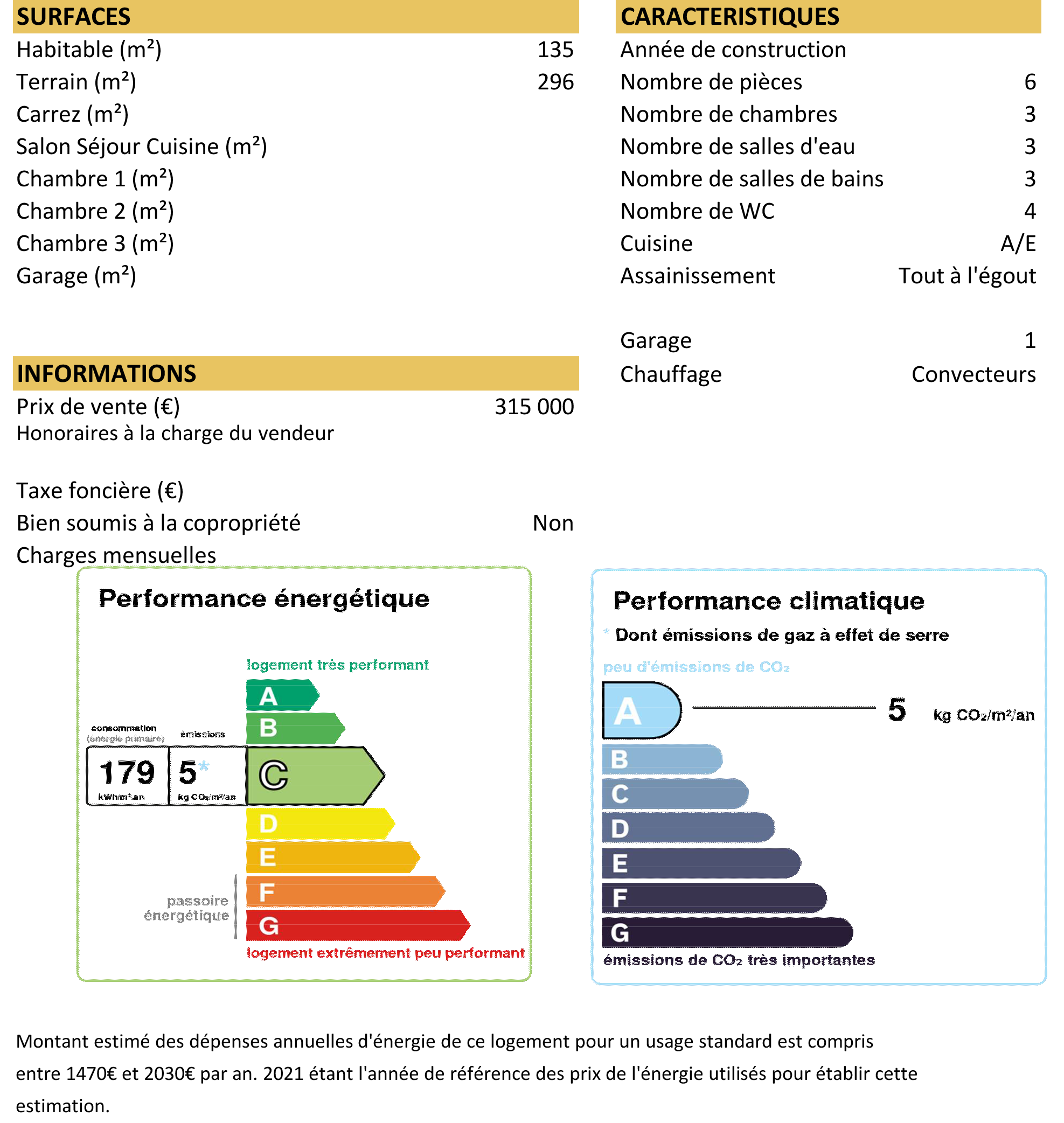 Date de réalisation du diagnostic énergétique : 04/04/2023 Consommation énergétique primaire : 179 kWh/m²/an Consommation énergie finale : 78 kWh/m²/an