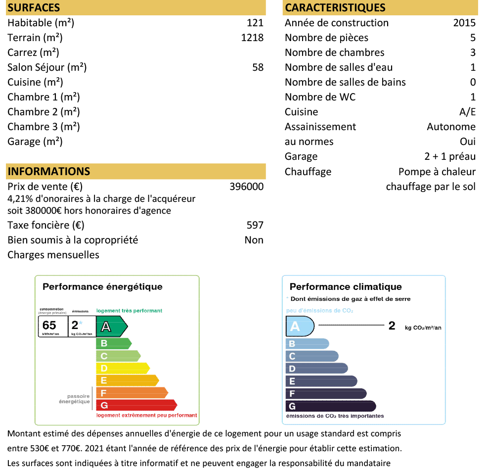 Prix du bien frais d'agence compris : 396 000 €